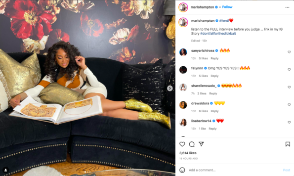 Despite her comments coming off as harsh. Marlo recently posted an IG picture uring fans to “listen to the full interview before you judge.”