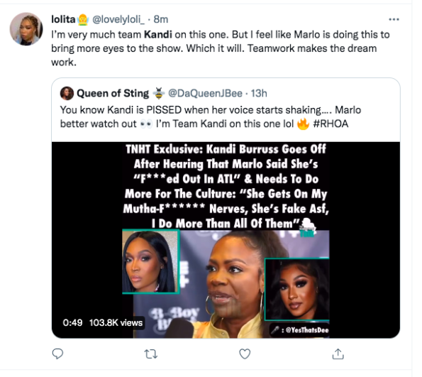 Part 1. Kandi Burruss calls Marlo Hampton “Fake As F**k”, lists her charitable work & recalls helping her get on another show on another network, as she reacts to Marlo saying she’s “f*cked out in Atl” pic.twitter.com/lsQ4T4PIbL