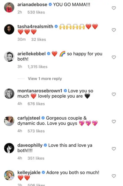 Celebrities, friends, and fans alike flocked to the post and flooded the new couple with overwhelming support. Actresses Arielle Kebbel and Montana Brown, as well as Wilson’s former co-stars, Tyler Barnhardt (“Senior Year”) and Kelly Jakle (“Pitch Perfect”) left heart-warming messages.