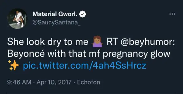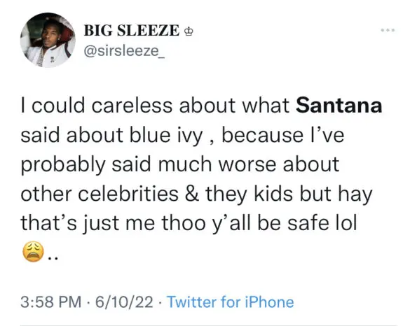 Following the resurfaced tweets going viral, many of Beyoncé’s very loyal fan group members, dubbed the “Beyhive”, made it known they were not here for the rappers comments. Many of them disparaged Santana for comparing the looks of children and called for a public apology.