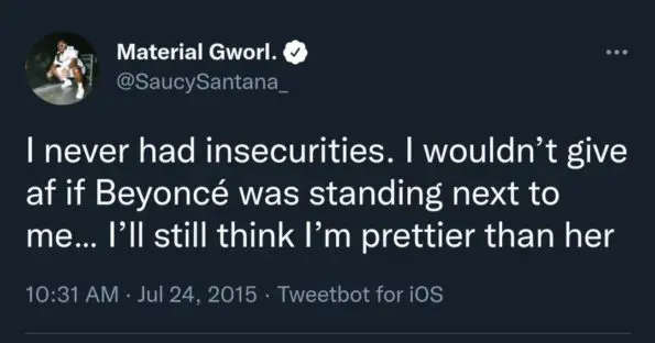 “I never had insecurities. I wouldn’t give af if Beyoncé was standing next to me… I’ll still think I’m prettier than her.”