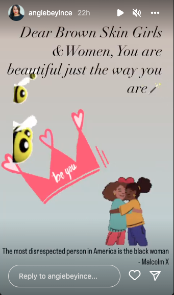 However, Beyoncé’s cousin, songwriter Angie Beyince, seemingly caught wind of the incident. Posting her grammy award winning cousin’s song “Brown Skin Girl” – which features Blue Ivy – to her insta story, Angie wrote:
