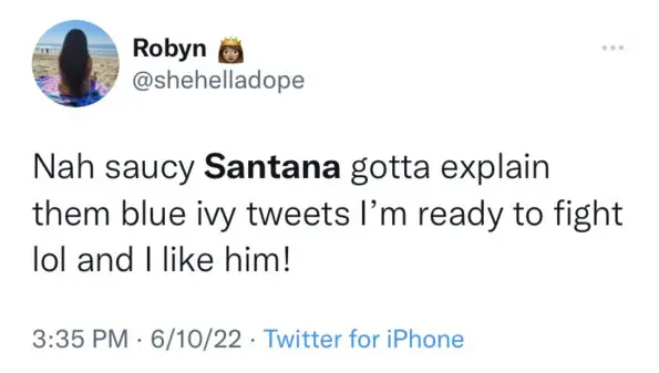 Responding to another person’s tweet who stated they just “wanna be Blue Ivy”, Santana responded: