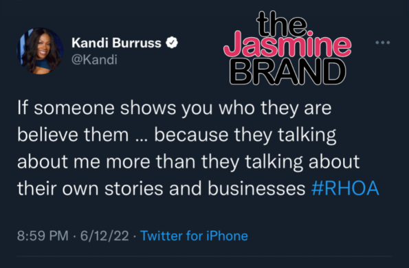 “If ya’ll do not know, I have been doing way more for the community than all [of my ‘RHOA’ castmates]! I don’t mind saying it. I don’t always do everything I do on television but if you want to go to television receipts – even the food drives that I did in the past – who was the main one trying to show up to help – her. And she wants to act like she doesn’t remember.”
