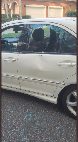 As the traumatic video continues, Jermaine shows both windows on his driver’s side completely destroyed. In the back seat, lays a large brick that Donald reportedly threw at the teen, missing him directly. At one point in the video, the teen questioned who was the person threatening him with a gun. In the background, Howard, one of the men, arrested stated: