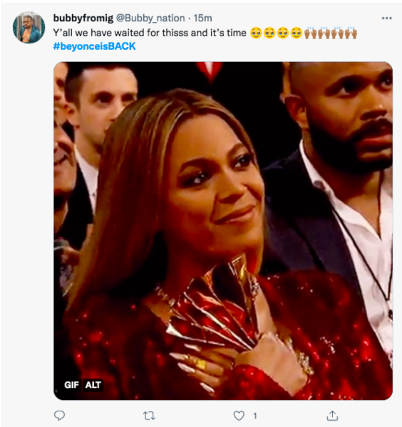 Since then, Beyonce and the hashtag #Beyonceisback have been trending online as fans share their excitement.