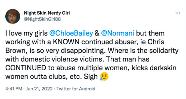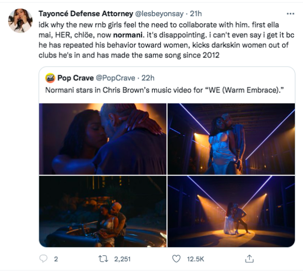 Many people called Normani out for working with someone that has a past history of being violent towards women. However, others pointed out that Rihanna has seemingly forgiven Chris and Normani isn’t the only celebrity that has worked with the Virginia native since the infamous dispute took place.