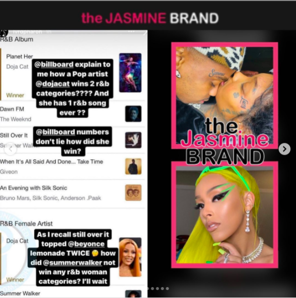 As previously reported her rapper beux, whose real name is Larry, recently came to Summer’s defense after feeling she was snubbed at this year’s Billboards awards. The musician lost the best R&B album nomination to pop artist Doja Cat, who took home three big awards that evening. The “Ex For A Reason” artist said ultimately, she’ll just have to work harder.