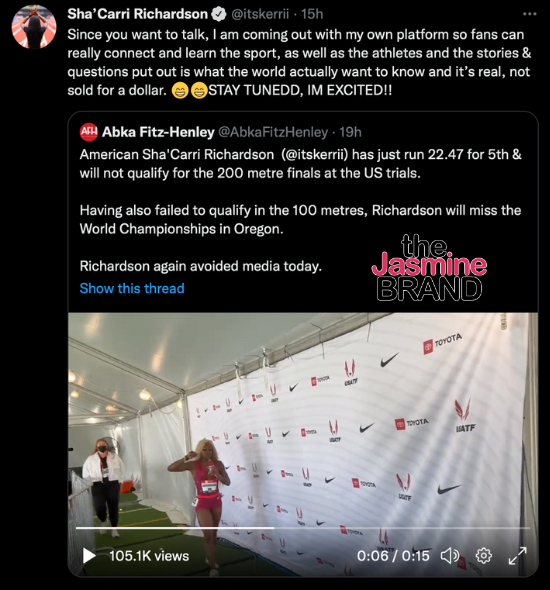 Sha’Carri Richardson Says Media Should ‘Respect Athletes More’ & Refuses To Do Press Interviews After Failing To Qualify In US Championships