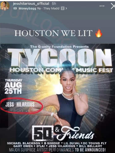 Subsequently, 50 allegedly joked about being robbed with Jess Hilarious, who’s slated to perform at the show. Users claim Jess, born Jessica Robin Moore, stated “who gone rob me”, leading to an all out assault from her fellow comic Billy.