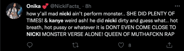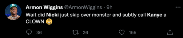 Nicki did not elaborate on what her issue was with the “College Dropout” rapper, but fans have been speculating since the clip went viral.