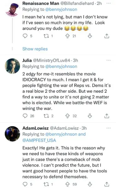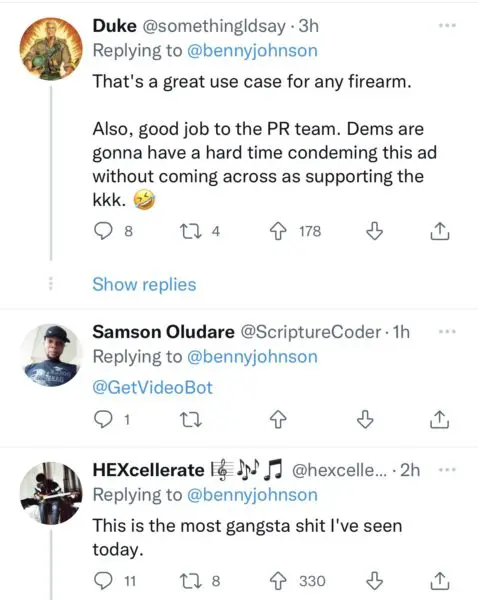 In the video, Jerone Davison is seemingly taking a dig at the Democratic party’s efforts to reduce gun violence and the accessibility to assault rifles. He said,