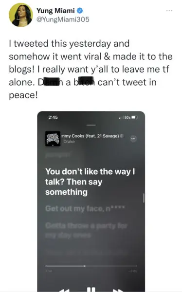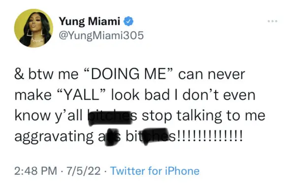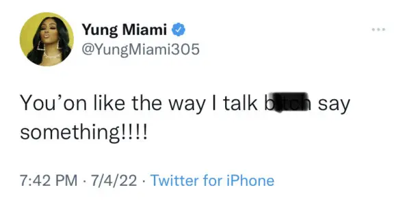 Apparently, some weren’t amused with the way the Miami native sought clarification on the status of their relationship. On Monday (July 4), Yung Miami shared a tweet that read,