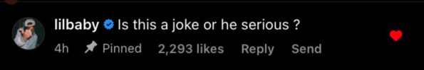 It seems like Lil Baby has heard the track and isn’t too pleased with it. He recently commented under an IG post with the music video and said,