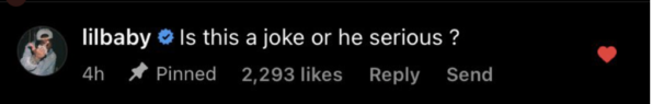 Lil Baby heard the song and wasn’t too fond of it. He commented under an Instagram post with the music video and said: