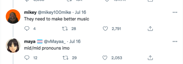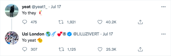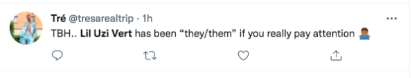 The 26-year-old rapper has yet to officially address the update, but he did seemingly confirm the pronoun change for fans via Twitter. A social media user wrote “Yo they” and Lil Uzi Vert simply replied,