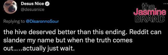 “The hive deserved better than this ending. Reddit can slander my name but when the truth comes out… actually just wait.”