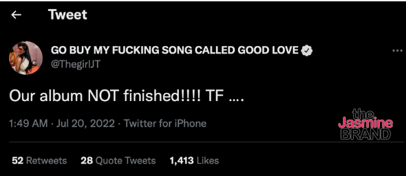 On Twitter, JT made a long story short when it came to explaining why the City Girls won’t be dropping their album on July 29th. JT tweeted: