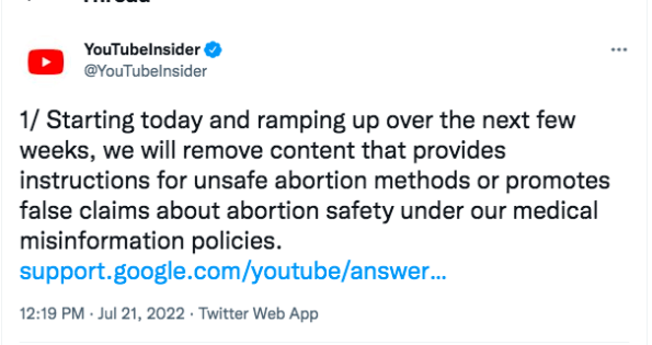 As you may already know, YouTube’s latest announcement comes after the Supreme Court recently overturned Roe v. Wade, which eliminated the constitutional right to abortion after nearly 50 years.