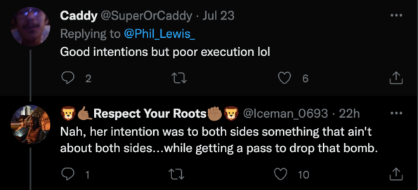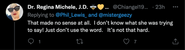 One user caught it when she said “I try to teach my children” prior to her use of the N-word: