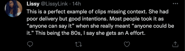 People on social media are going back and forth about how confusing the woman’s statements were. The user who posted the viral clip on Twitter captioned it with the question “What point was she even trying to make,” giving users room to make sense of the video.