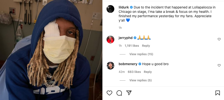 Lil Durk Says He’s Taking A Break After Onstage Explosion At Lollapalooza Causes Eye Injury