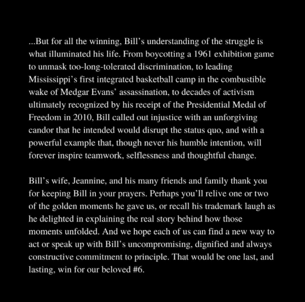 We’re sending our prayers and thoughts to the loved ones of Bill Russell during this difficult time.