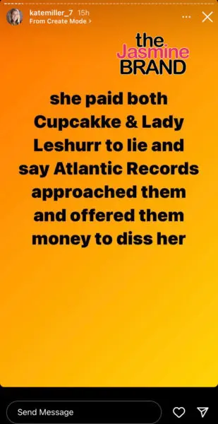 The alleged former employee took things a step further and accused the New York native of paying rappers Cupcakke and Lady Leshurr to lie and say record label Atlantic Records approached them and offered them money to diss her.