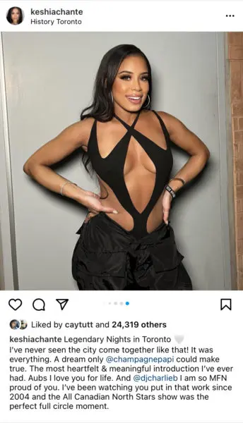 Keshia Chanté is long-speculated to be the “KiKi” that Drake sings about on his 2016 hit, “In My Feelings.” Following her performance, Keshia took to Instagram to express her gratitude in return to the Canadian rapper. In the lengthy caption, the television host wrote: