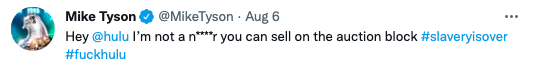 “Don’t let Hulu fool you. I don’t support their story about my life. It’s not 1822. It’s 2022. They stole my life story and didn’t pay me. To Hulu executives I’m just a n****r they can sell on the auction block.”