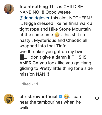 After a social media account trolled Glover over his eye catching wardrobe, 33-year-old singer/songwriter Chris Brown, who was seemingly not in attendance, decided to join in on the fun.
