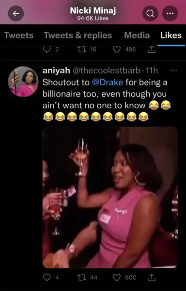 “Shoutout to @Drake for being a billionaire too, even though you ain’t want no one to know.”