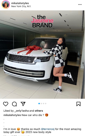 Mikalah took Instagram to thank Terrance J for her birthday present. She said: