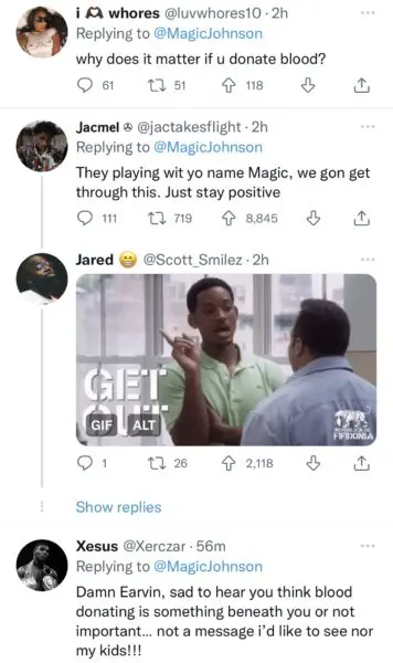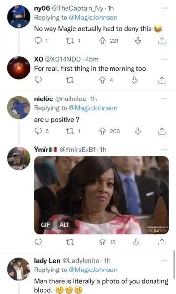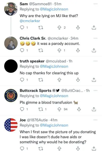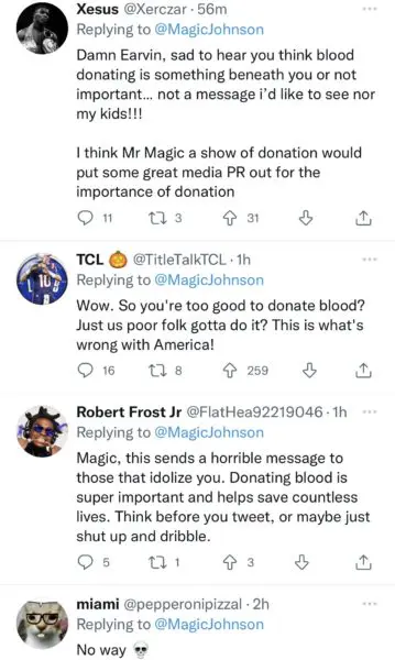 His message received mixed reviews. Some fans came to his defense and applauded him for clearing the air while others were confused as to why the Basketball legend would not want to donate blood. It appears some of his younger fans were unaware Johnson was HIV positive. See reactions below: