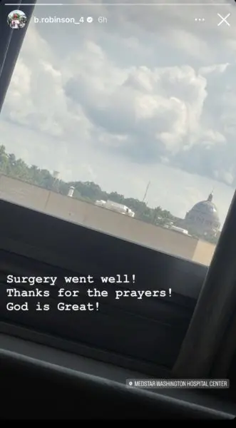 We’re glad to hear that Brian Robinson Jr. had a successful surgery and is recovering! What are your thoughts? Let us know down below!