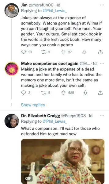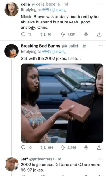 The 57-year-old comedian then referenced O.J Simpson’s 1995 murder trial, saying that it would be like asking deceased Nicole Simpson “to go back to the restaurant,” where she left a pair of glasses the night she died.