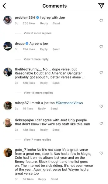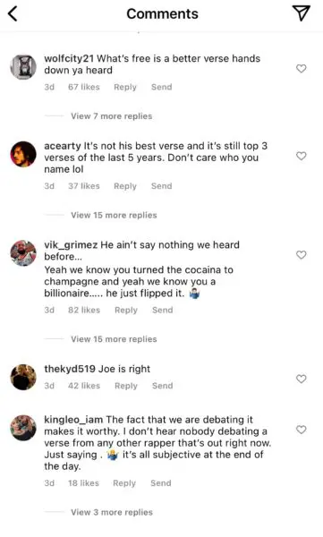 His co-hosts argued that the verse is in HOV’s top 50 and Joe disagreed every time. Fans took to Instagram to share their thoughts on Budden’s opinions, with most of his fans agreeing with him.