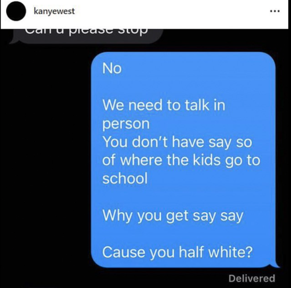 West also shared alleged private messages from Kris Jenner pleading with him to stop the internet rants about her family. The text read: