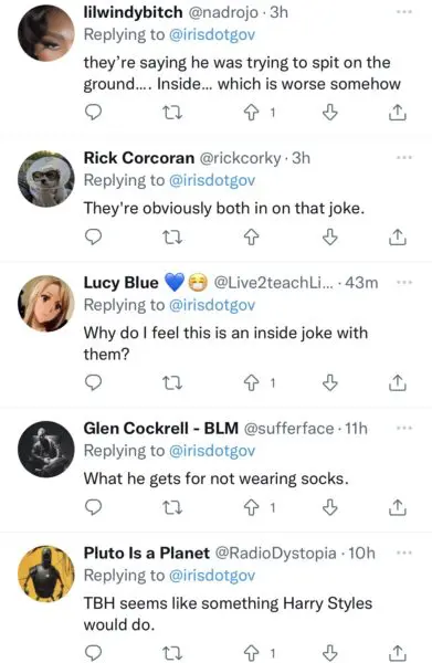 “#HarryStyles appears to spit on Chris Pine I won’t sleep until i know the truth,”
