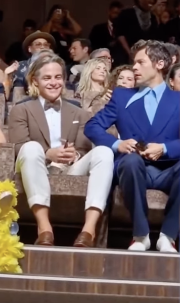 On Monday (Sept. 5) the cast of the film arrived at the Venice International Film Festival for its premiere. In a now viral clip, singer Harry Styles is seen approaching actor Chris Pine to take a seat next to him at a screening of the thriller. As Styles moves to his seat, he makes a subtle spitting motion with is mouth. Pine then looks down at his lap, stops his applause, shakes his head and then grins and laughs.