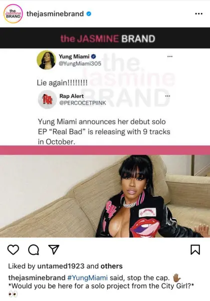 “Yung Miami announces her debut solo EP “Real Bad” is releasing with 9 tracks in October.”