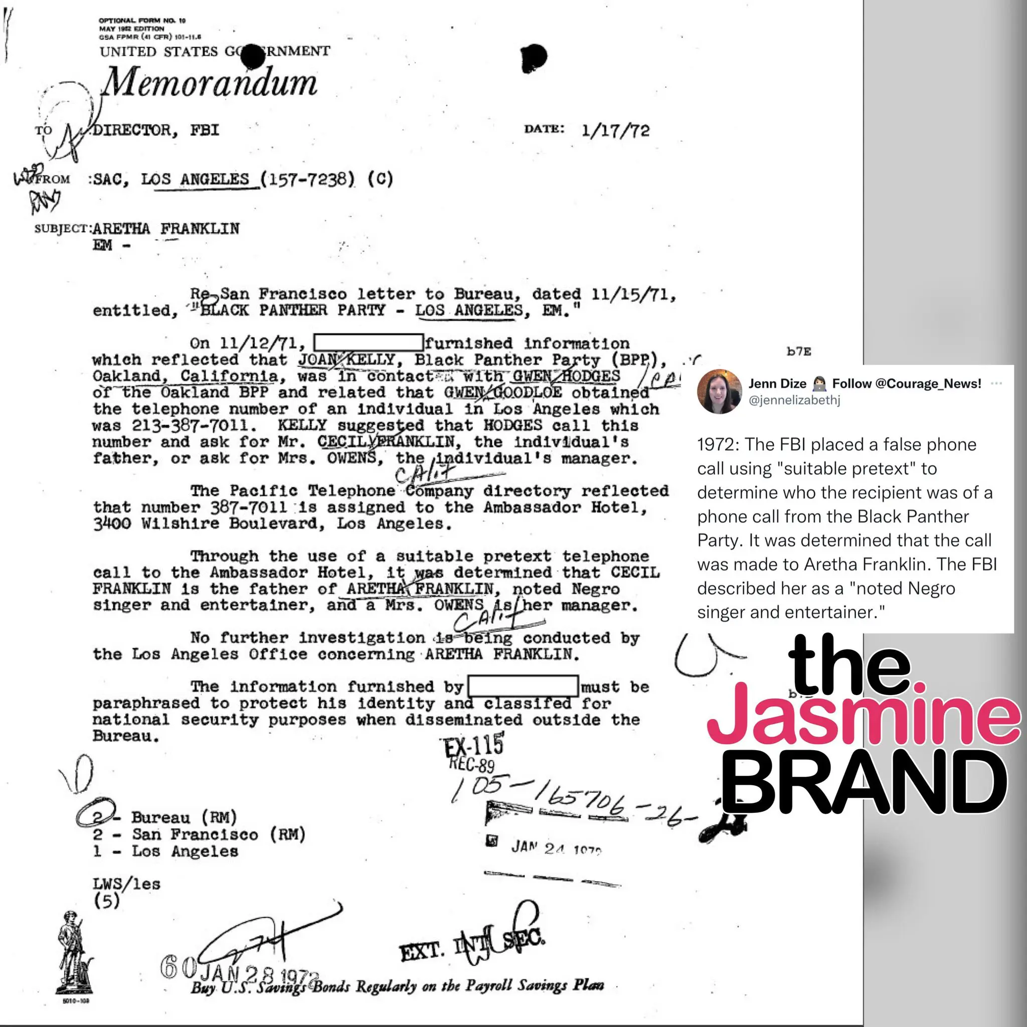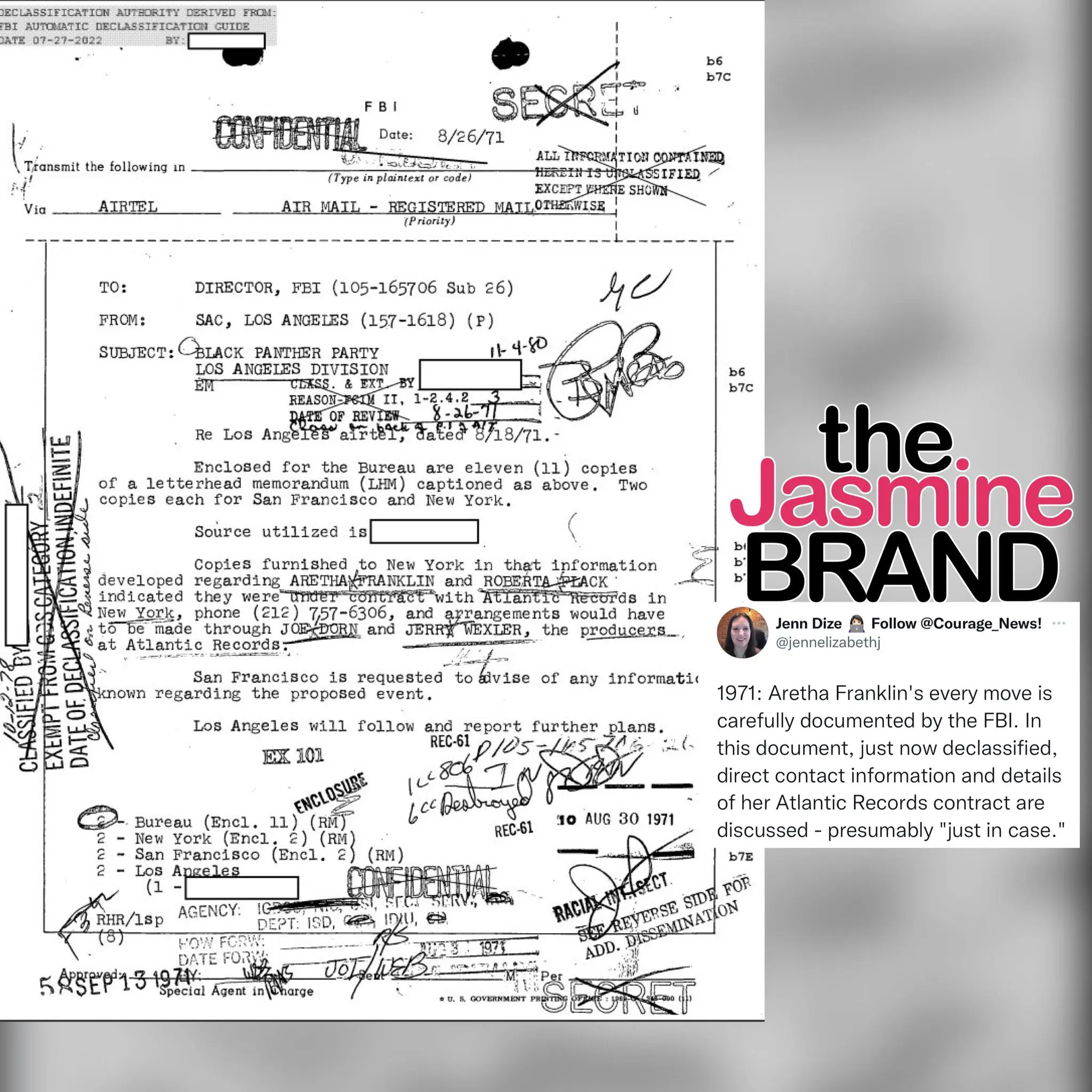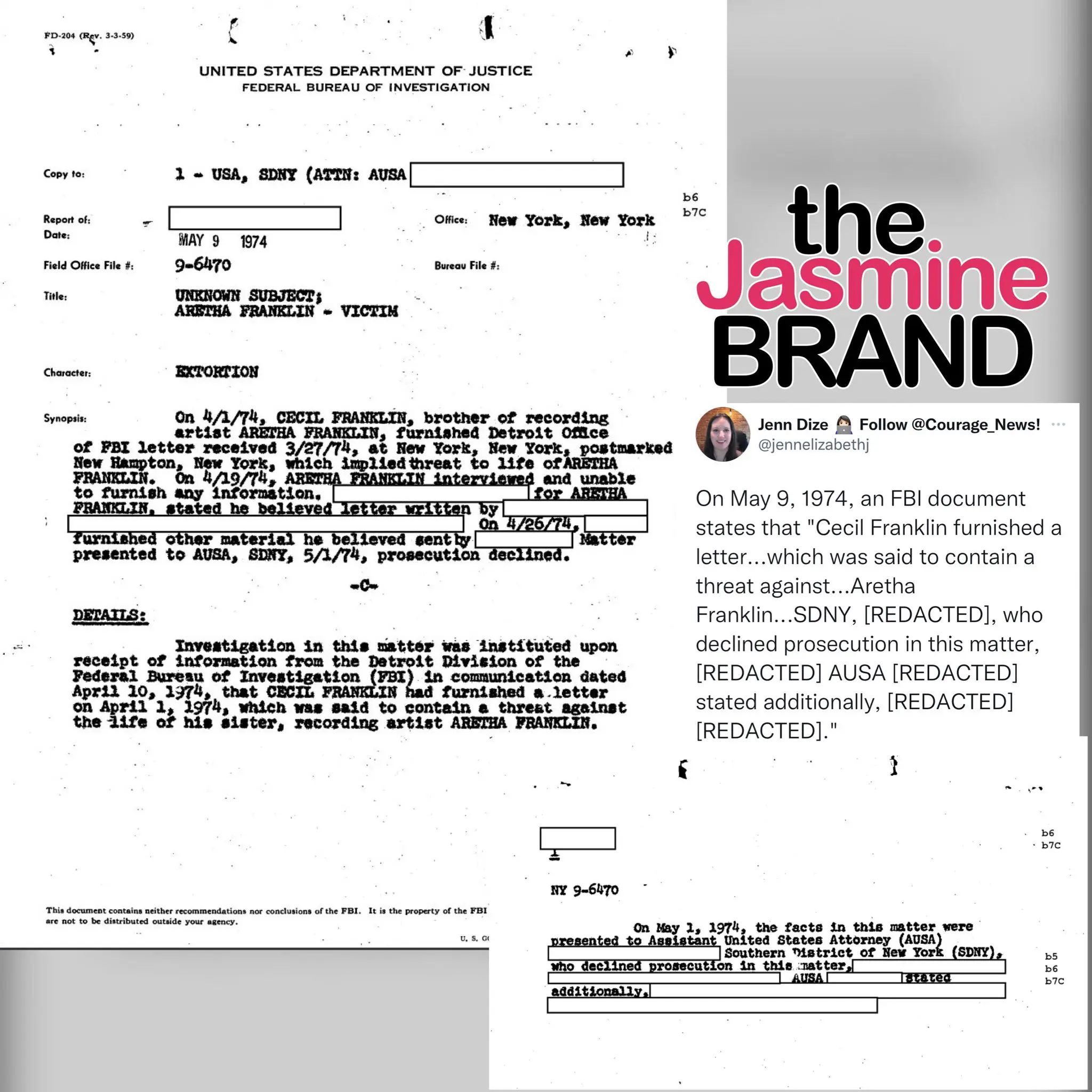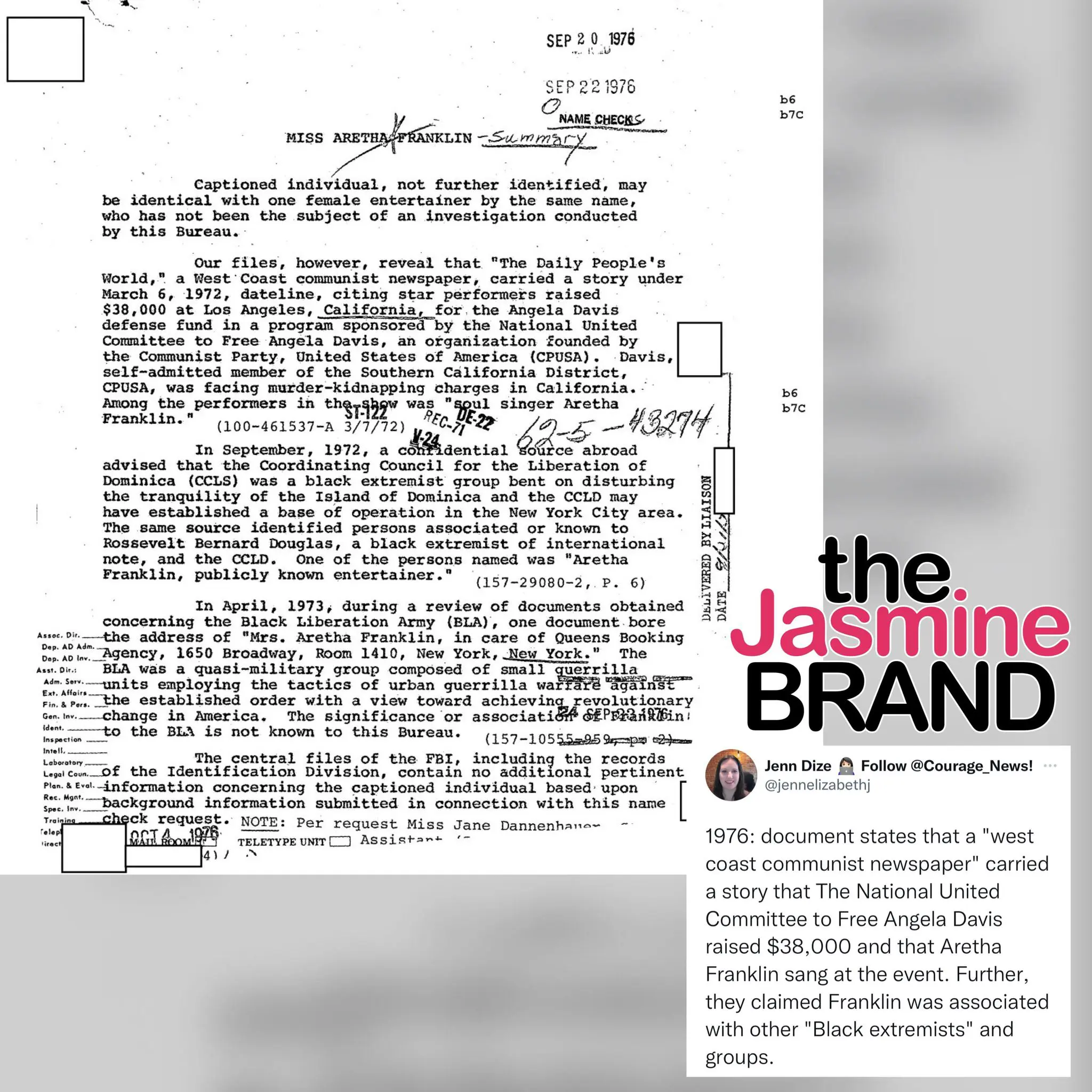 Recently, a journalist by the name of Jenn Dize took to her Twitter account to share some never-before-seen files from the FBI, and it seems as if they were trying to build a case around the honorable Aretha Franklin.
