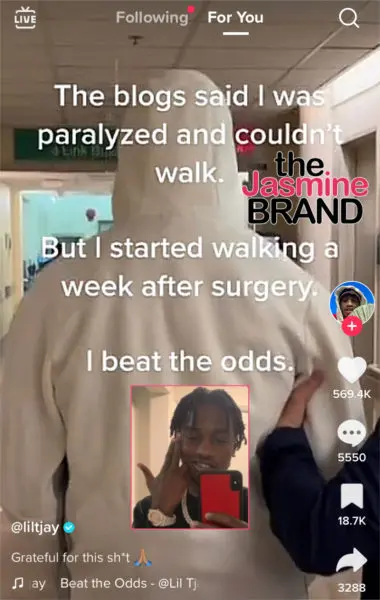 While on his way to recovering in the hospital and returning to music, the singer/song-writer also had a caption over the video, which addressed the scary news reports that came out about the shooting. Tjay wrote over the video snippet,
