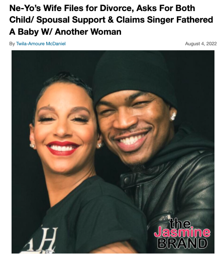 As previously reported, Renay asked for both child and spousal support after serving her husband of six years with divorce papers back in July. In an emotional instagram post, the mother of three accused Ne-Yo of being a serial cheater and fathering a child outside of their marriage.