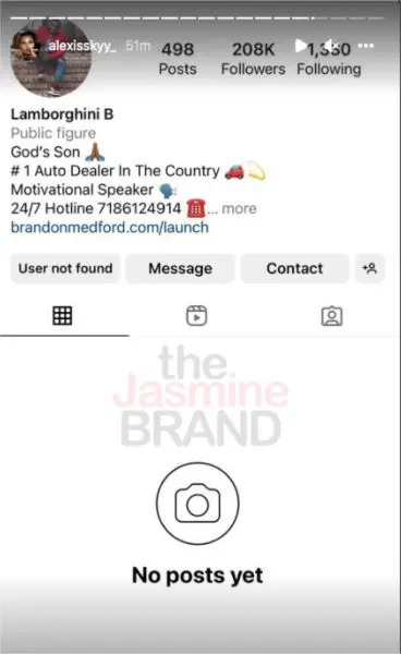 In addition, the mother-of-one claimed that Brandon Medford, 29, blocked her on everything. The entrepreneur allegedly blocked Alexis following the claims.
