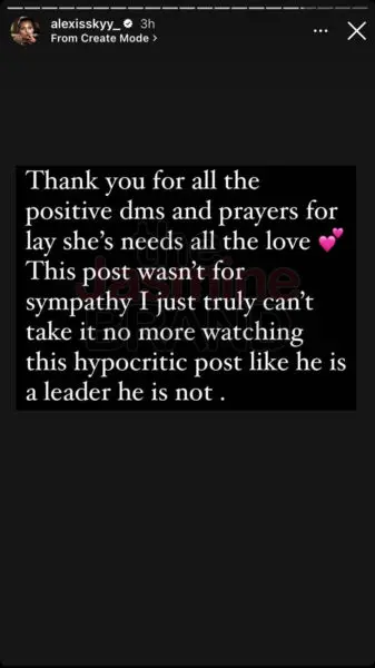 Following the post, Alexis noted that she and her daughter are currently still in the hospital. In an additional post via her IG stories, the Instagram model expressed her reasoning for airing out her child’s father. She said,