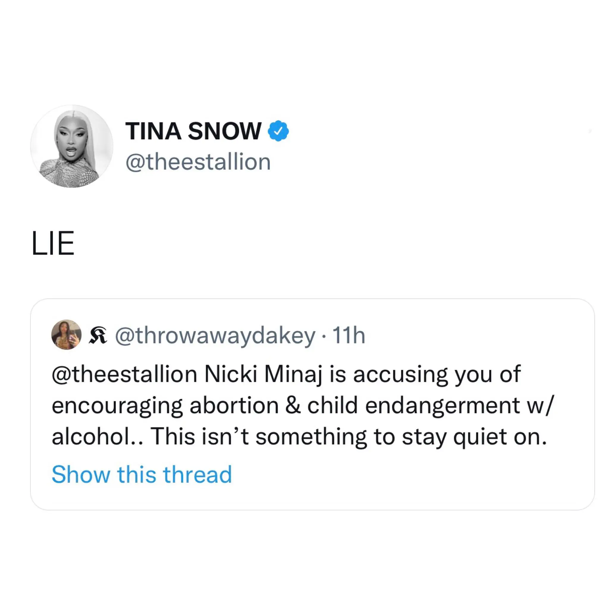 Following the episode’s airing, someone took to Twitter and addressed the claims with Megan Thee Stallion, to which she has since responded. The 27-year-old debunked the rumors by quoting the tweet and simply saying, “LIE.”