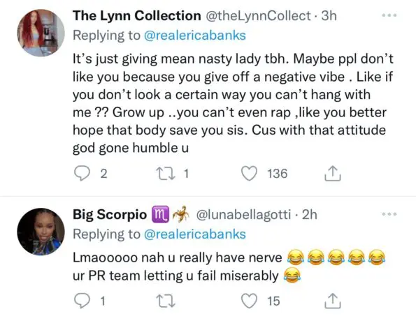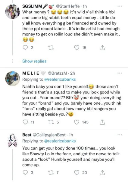“I was still Erica Banks, dumb b*tch. A BBL doesn’t solidify who I am & I can hangout with who I choose.”