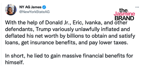 According to reports, James filed a civil fraud lawsuit on Wednesday (Sept. 20) against Trump and his three adult children as well as senior members of the Trump Organization. The lawsuit alleged business and insurance fraud as well as a conspiracy which sets the highest point of a three-year investigation into Trump and his business.