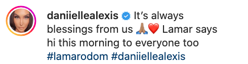 “It’s always blessings from us Lamar says hi this morning to everyone too #lamarodom#daniiellealexis”